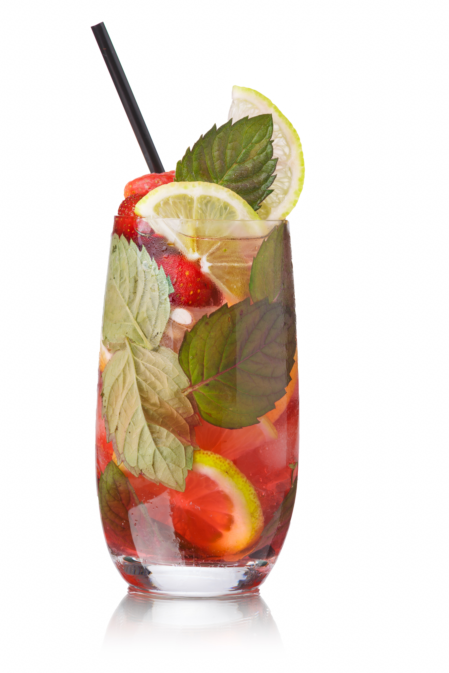 Strawberry Mojito – Přidejte 2 jahody, které rozdrťte spolu s limetkou, mátou a cukrem.
